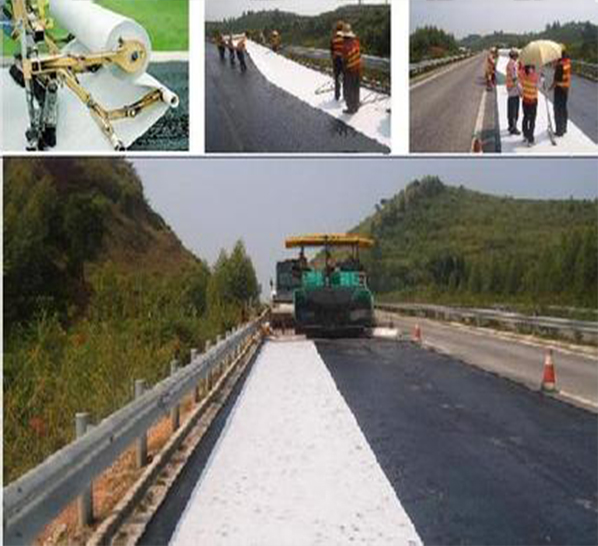 在热拌沥青混合料路面下安装防水层,是保护和延长道路寿命的很好方法之一。一般材料的防裂布在高温时会变形、损坏,聚酯玻纤布是由非织造玻纤/聚酯制造。可以经受改性沥青混凝土的高温施工。聚酯玻纤布的这种高温稳定性将给路面提供一个连续、不变形的防水层,有效地防止水分渗透,避免因水分渗透而导致的路面层与基层的损坏。
