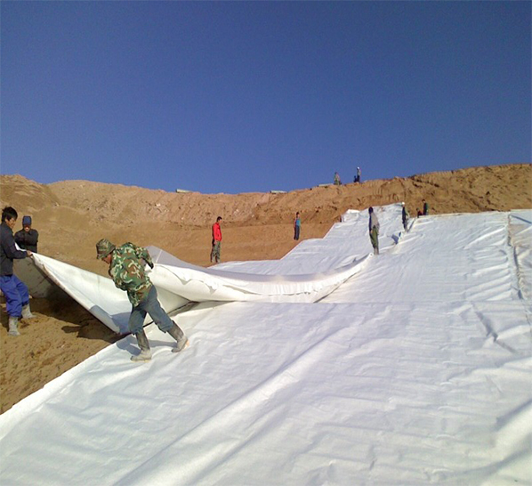 土工布作为土工膜的保护层,使保护防渗层不受损坏。为减少紫外线照射,增加抗老化性能,最好采用埋入法铺设。