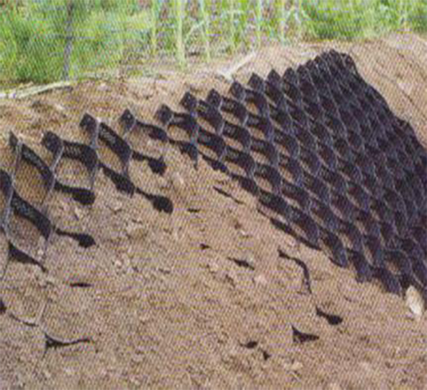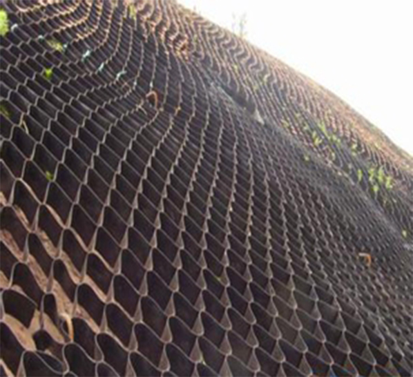 土工格室是由高强度的HDPE或PP共聚料宽带,经过强力焊接或铆接而形成的一片网状格室结构。它伸缩自如,运输时可缩叠起来,使用时张开并又充填土石或混凝土料,构成具有强大侧向限制和大刚度的结构体。它可用来做为垫层,处理软弱地基增大地基的承载能力,也可铺设在坡面上构成坡面防护结构,还可以用来建造支挡结构等。