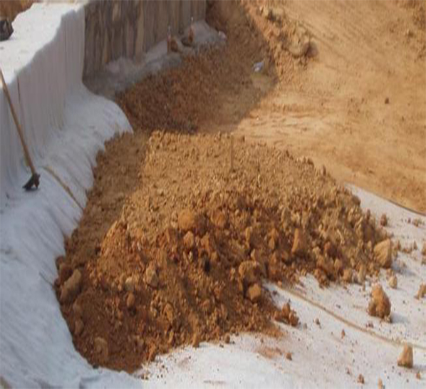 4、施工完毕后的膨润土垫上不得有泥块、污物、杂物等可能损坏防渗层的异物存在。
